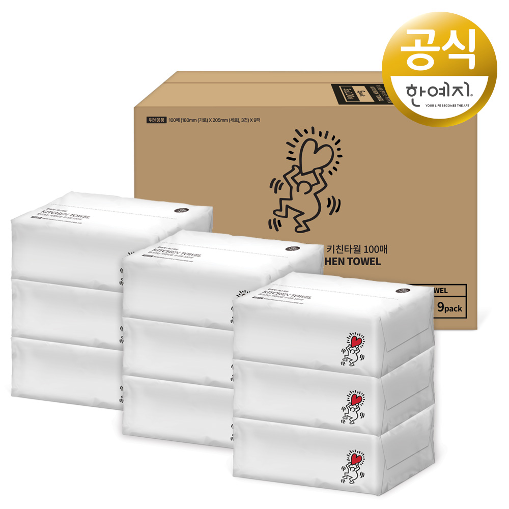 키스해링 뽑아쓰는 소프트 키친타올 100매 (9팩)