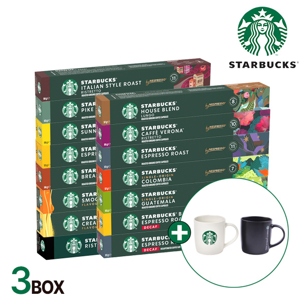 [네스프레소] 스타벅스 10입 커피캡슐 3박스 (15종 택1) + 스타벅스 머그컵(색상랜덤)