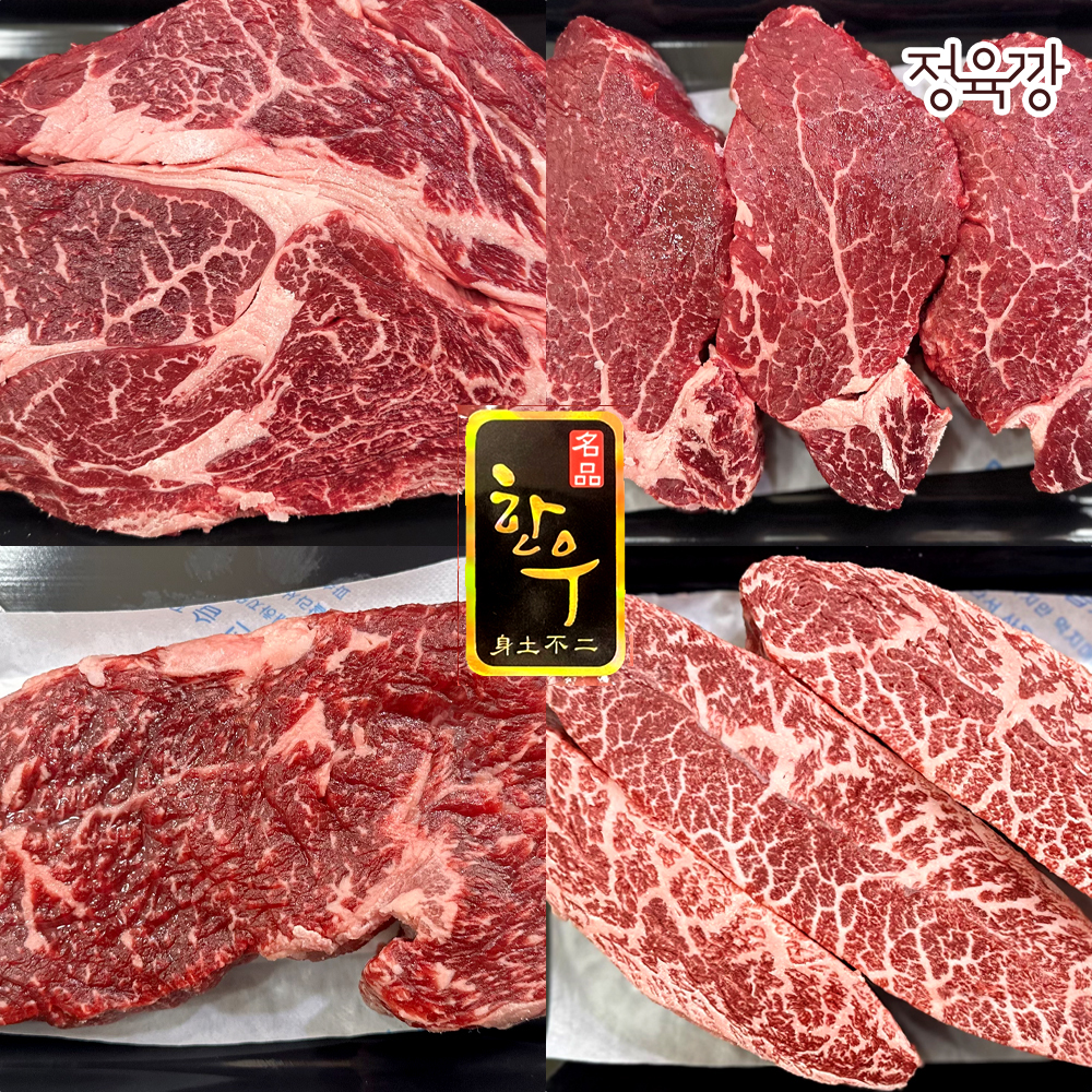 연말모임, 크리스마스에 추천 스테이크[정육깡] 1등급 한우 4종(꽃등심,안심,채끝,부채살) 300g 구이용