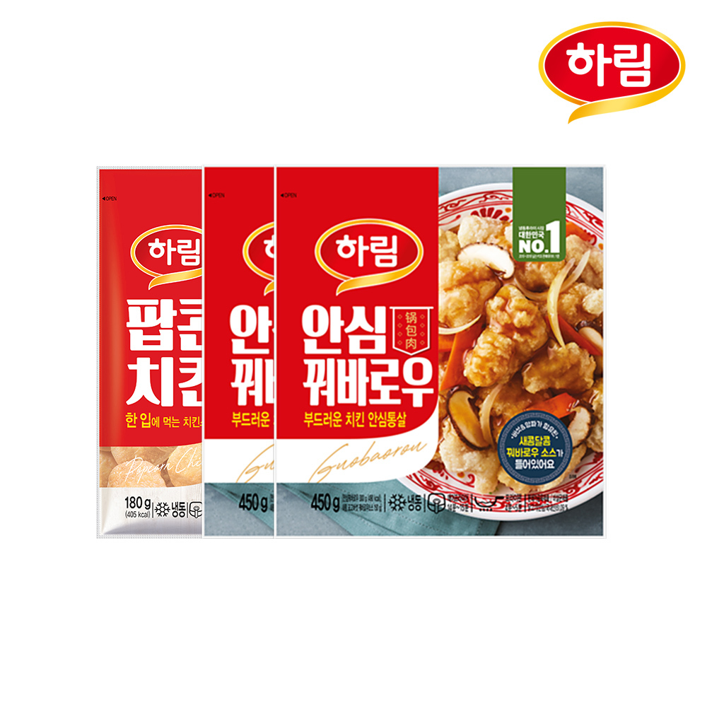 [하림] 안심 꿔바로우 450g 2개 +팝콘치킨 180g 1개