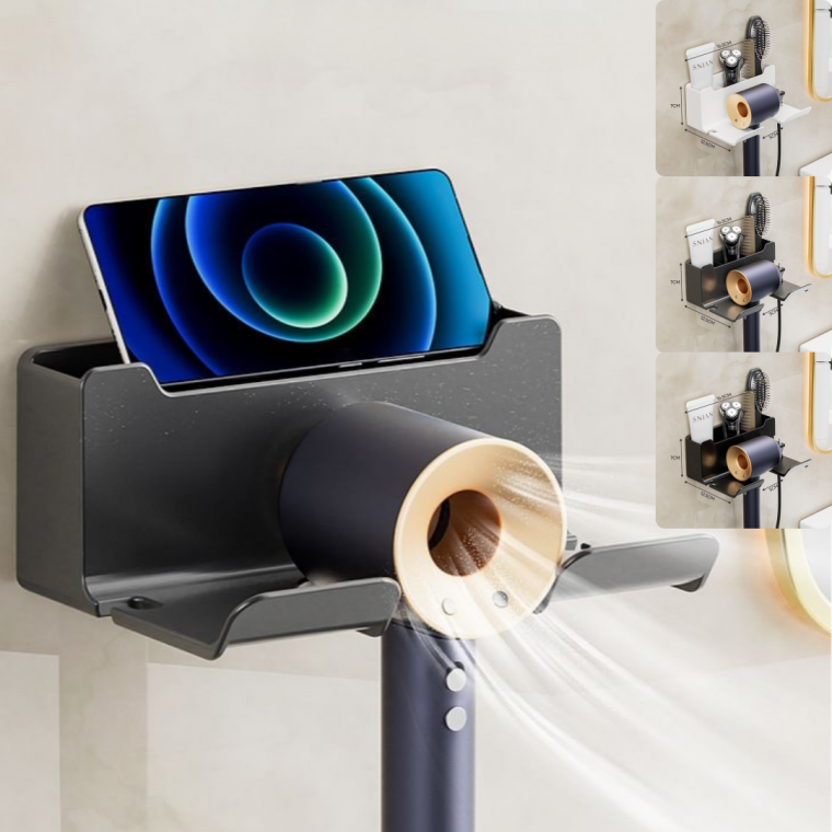 무타공 드라이기 거치대 멀티수납 3칸 헤어드라이기 선반 드라이기홀더 3Color