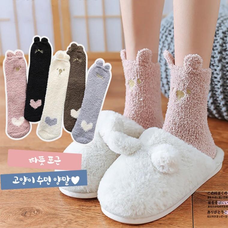 따뜻 포근 귀여운 고양이 수면 양말 삭스 여성 여자 수족냉증 발 임산부 보온 방한 학생 두꺼운 장목