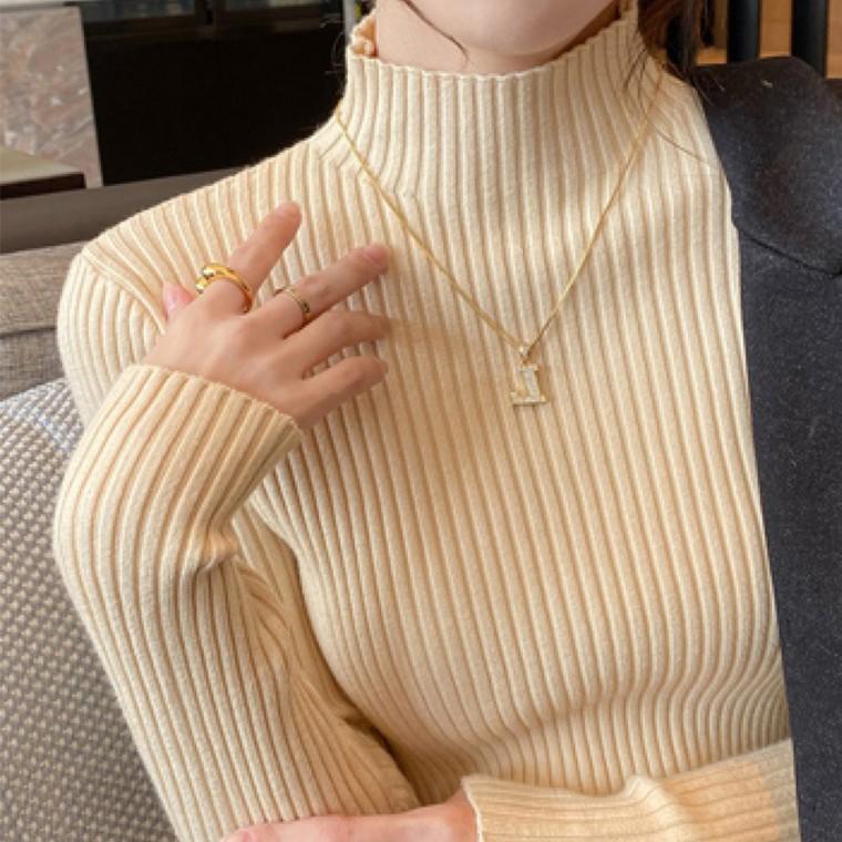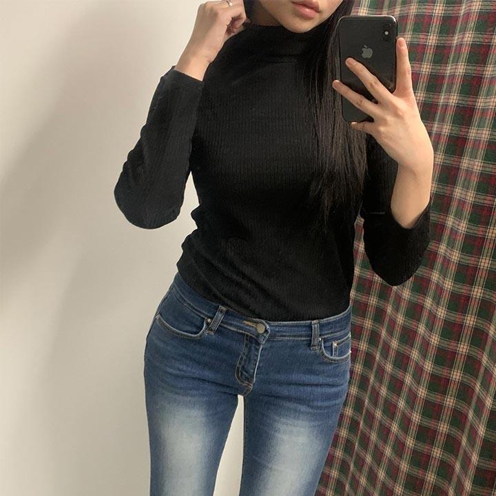 여성 반폴라 반폴라 골지 니트티 터틀넥 목폴라 베이직 기본 여자 긴팔 니트 티셔츠 KK994