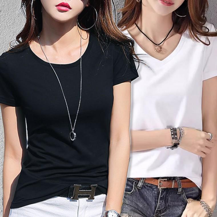 여성 데일리 베이직 반팔 브이넥 라운드 티셔츠 2color / 여름반팔 데일리티셔츠 면티