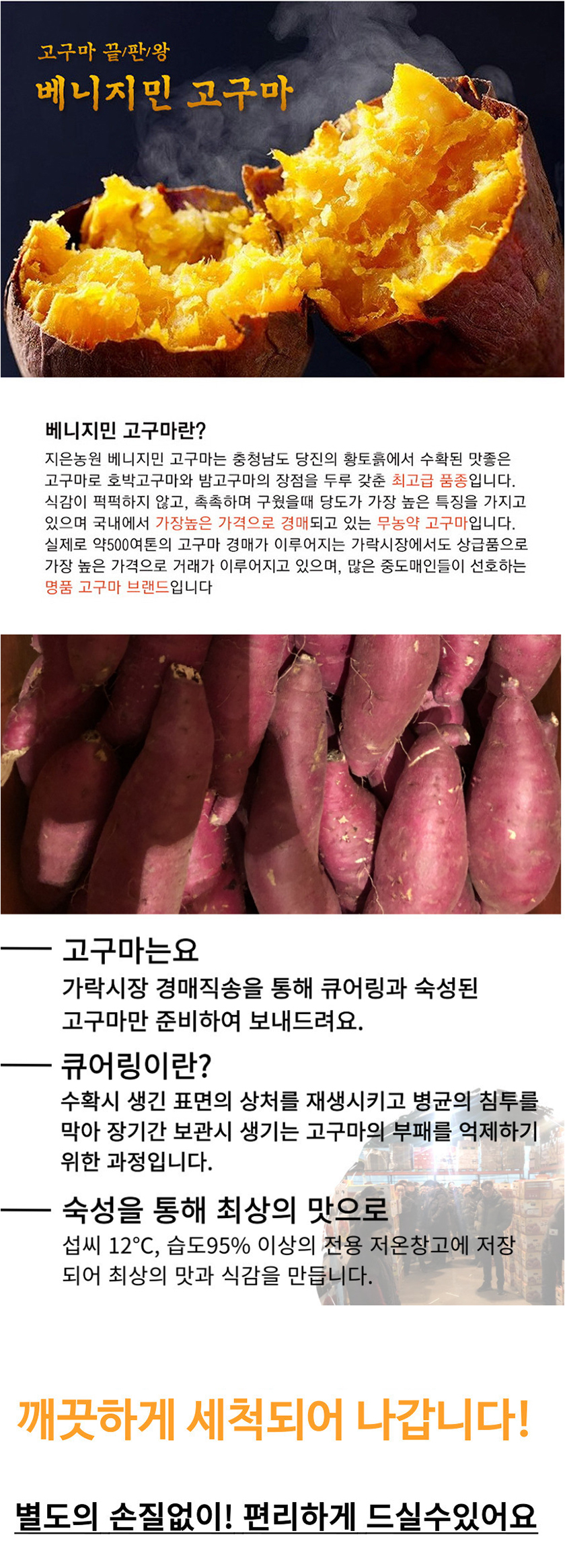 [경매직송] 무농약 세척 지은농원 베니지민 꿀고구마(로얄) 2Kg/3Kg/5Kg/10Kg