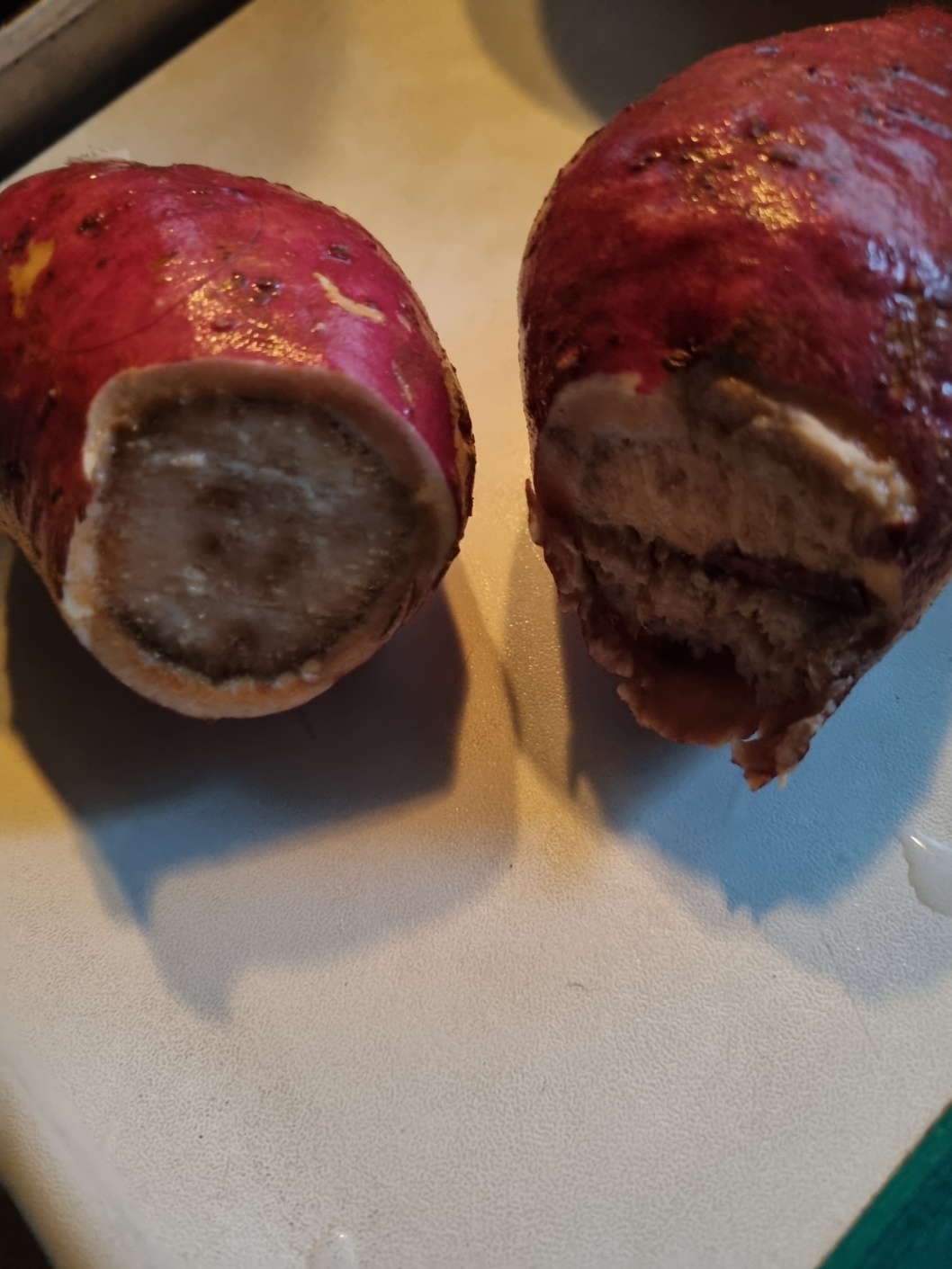 처음인것같습니다. 찌기전에는 색깔은 일반 고구마와 같은데 이렇게 변한 이유가 뭔지를 모르겠습니다. 답장 부탁드려요