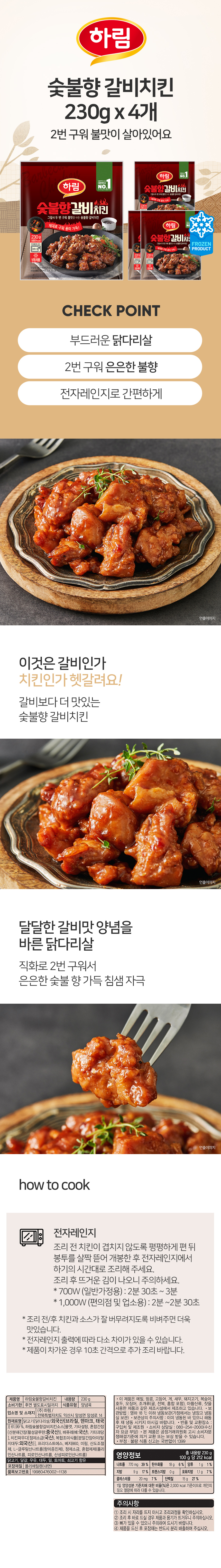 | 제품명 | [하림] 숯불향 갈비치킨 230g 4개 |