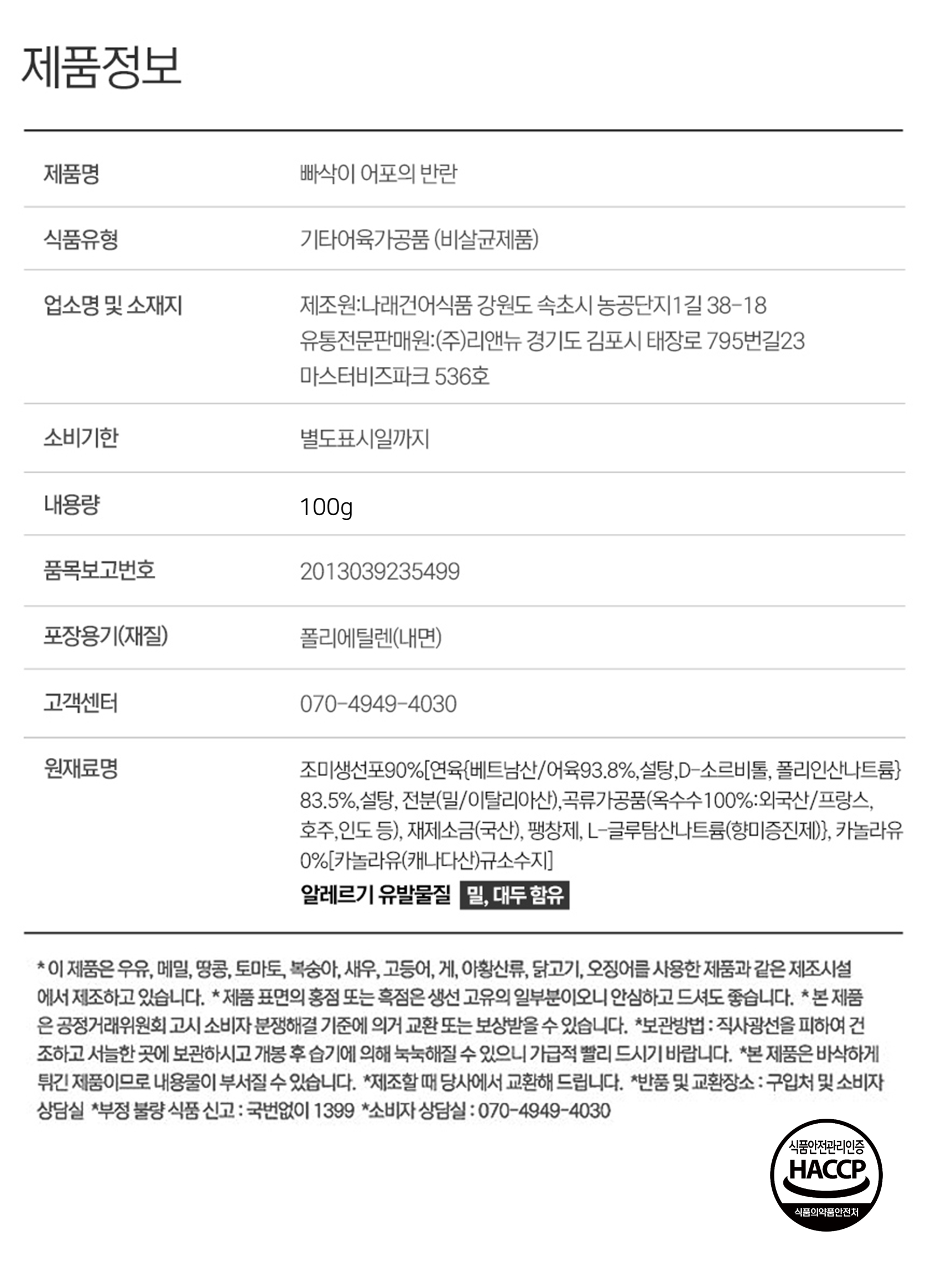 [바베큐아저씨] 빠삭이의 반란 어포튀김 100g 1봉 5봉 10봉