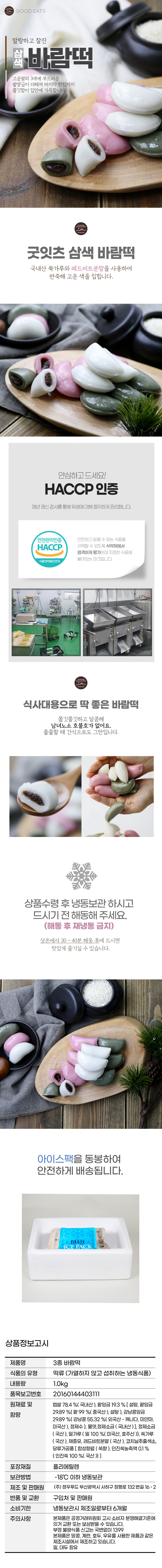 | 포장단위별용량 (중량,수량) | 꿀떡1kg+바람떡1kg |