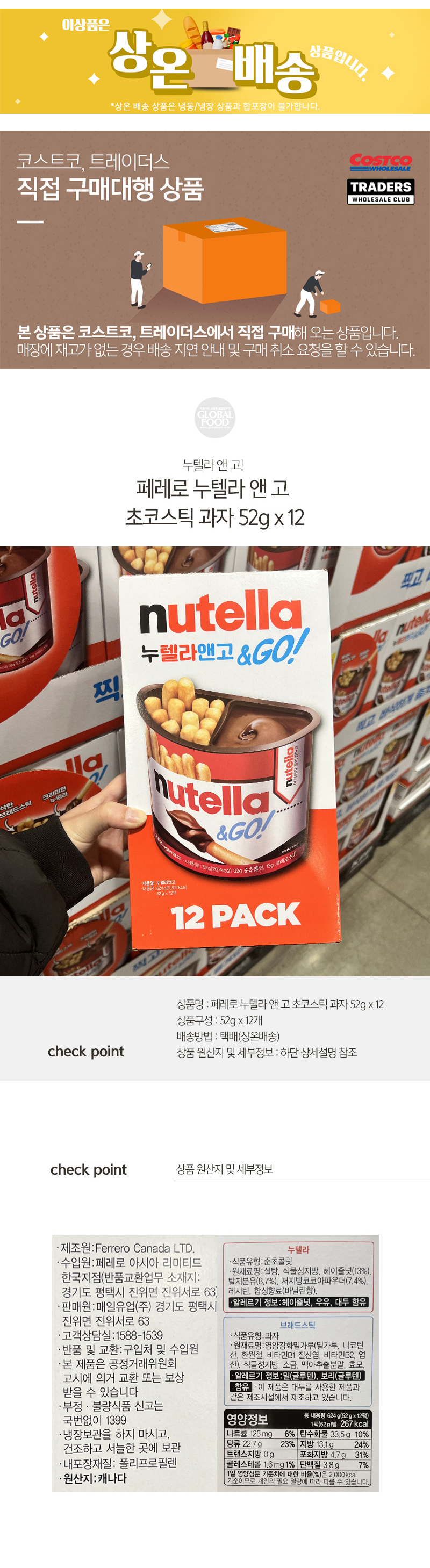 [코스트코] 페레로 누텔라 앤 고 초코스틱 과자 52g x 12 / 막대 과자