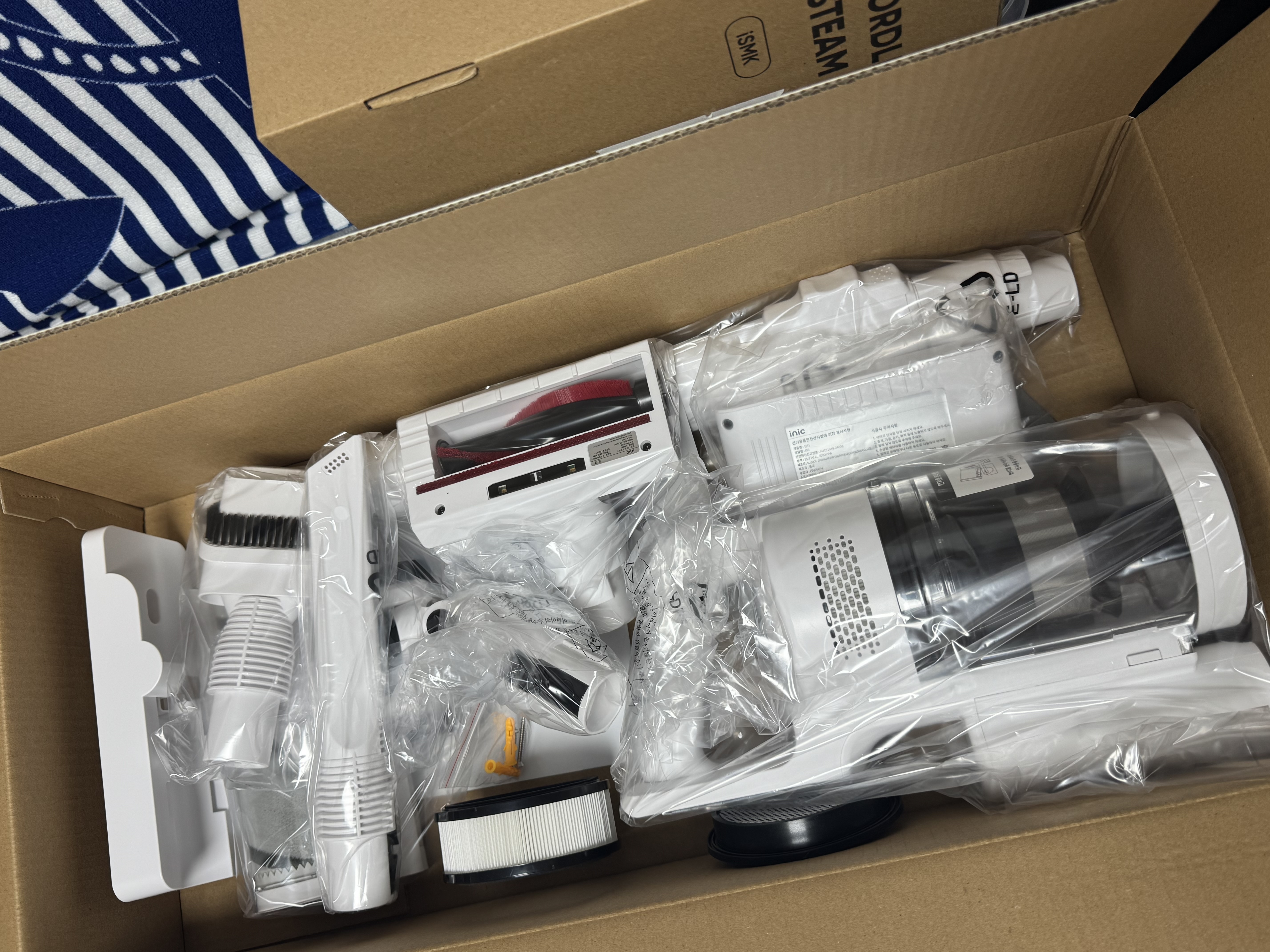 포장을 얼마나 해두신건지 푸는 것 부터가 일이었습니다 ㅋㅋㅋㅋ구성도 짱짱하고 키트 배송 이슈가 있었지만 담당자분께서 빠르게 처리해주셨습니다 ! 앞으로는 청소기는 아이닉 할래요~~아이~~닉 !