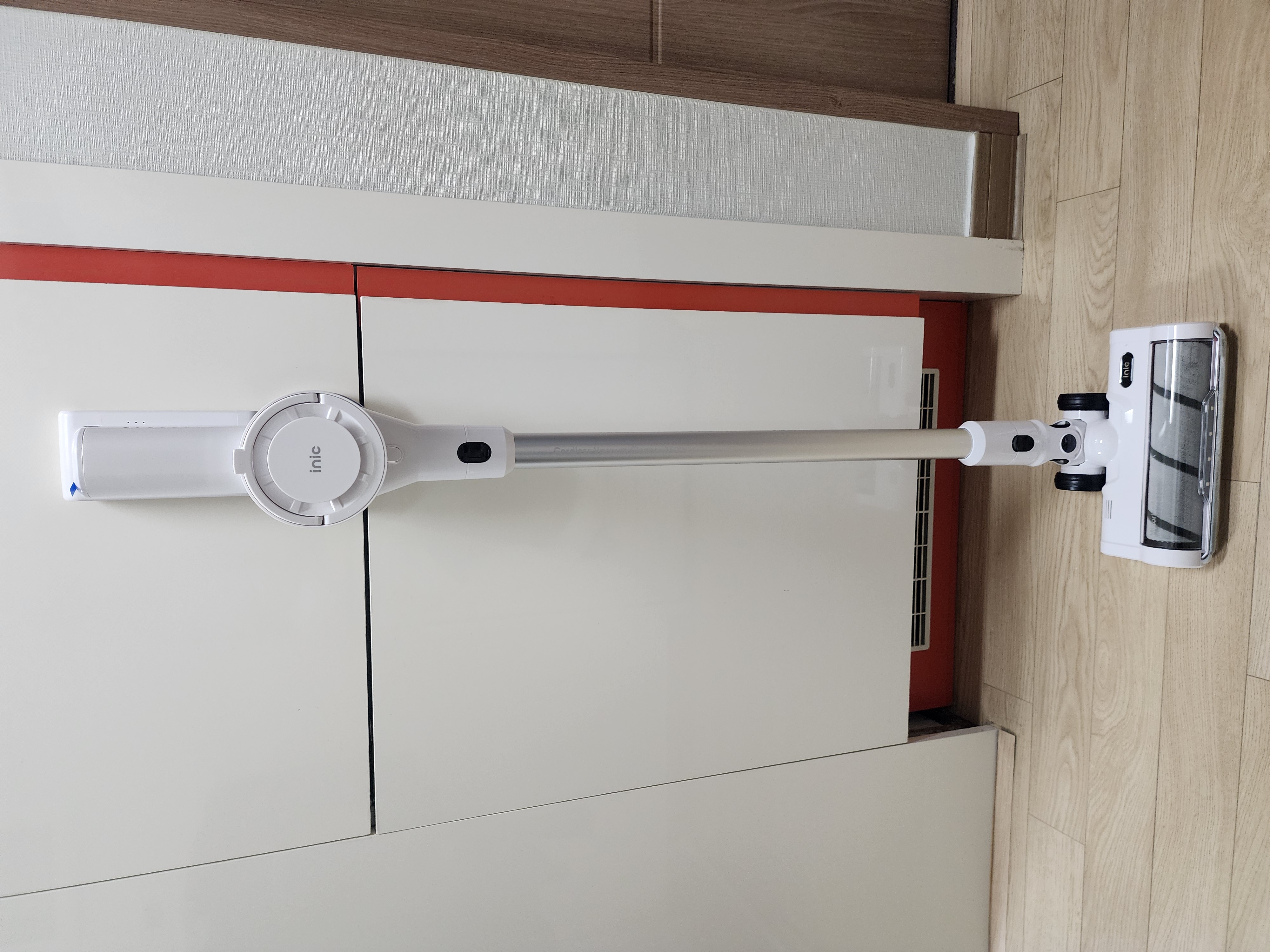 흰색이라 깔끔해보이고 가벼워서 사용할때 너무 편해요!!원룸이라 구석구석 청소하기 딱이고 러그청소할때도 유용할꺼같아요!!