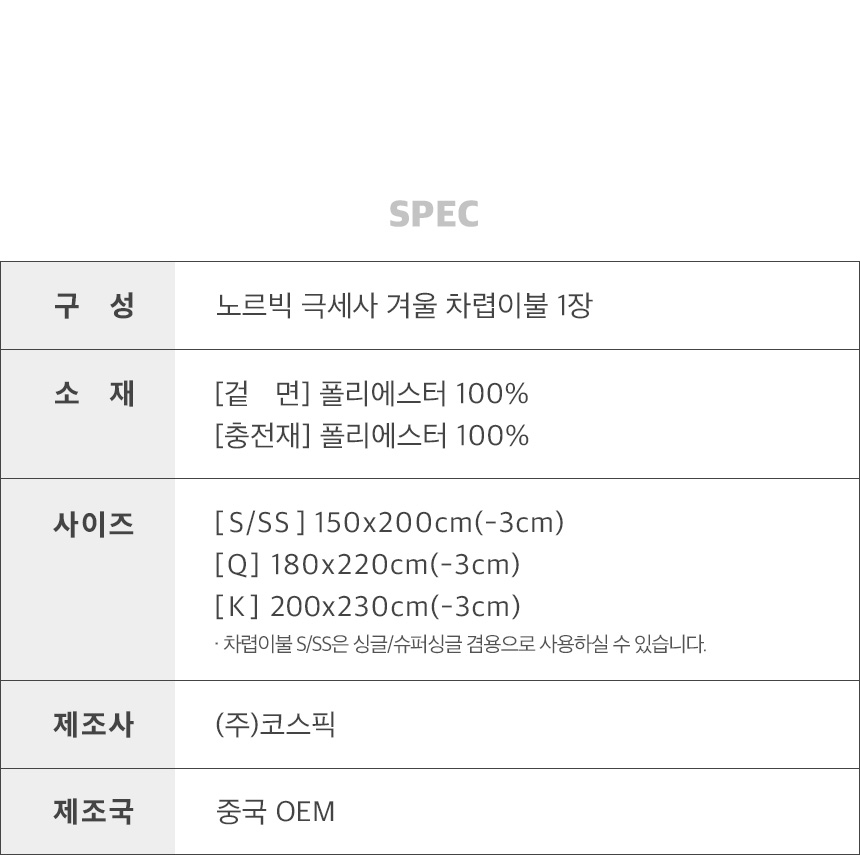 [라뽐므] 노르빅 극세사 겨울 차렵이불 Q(퀸)