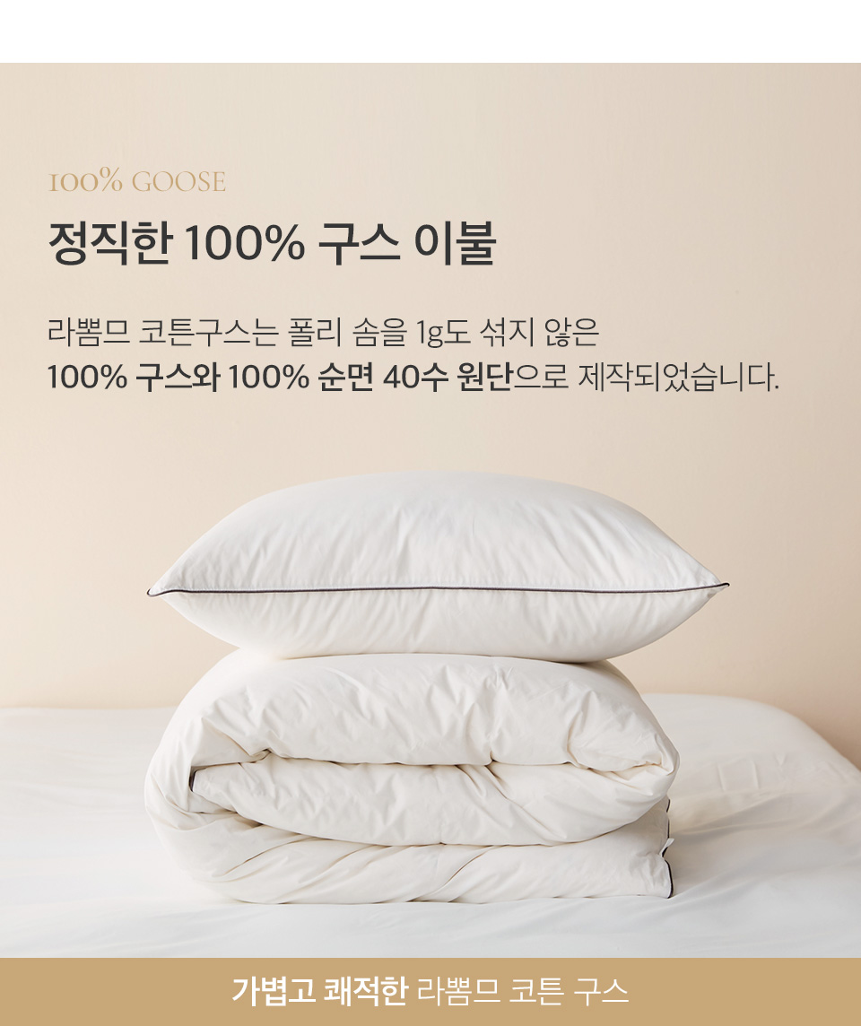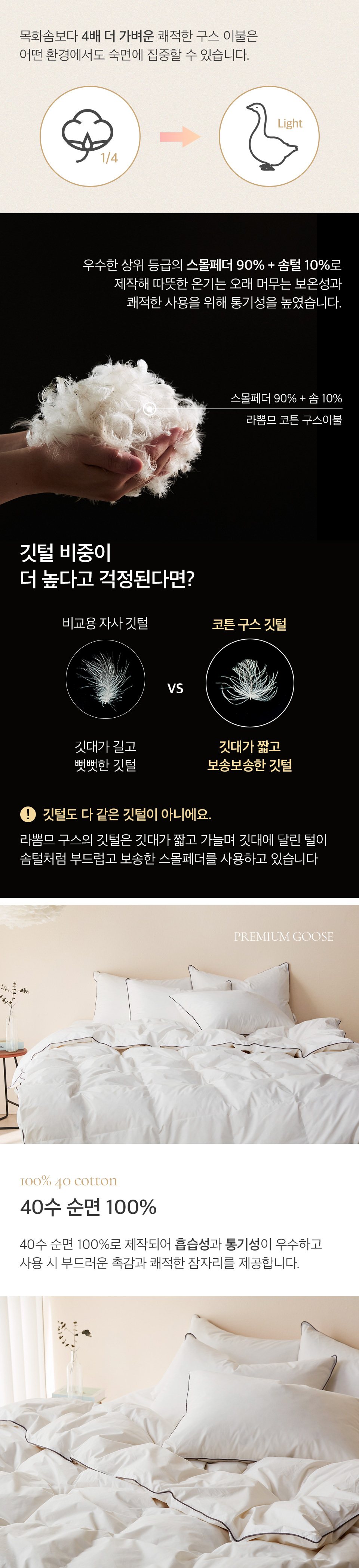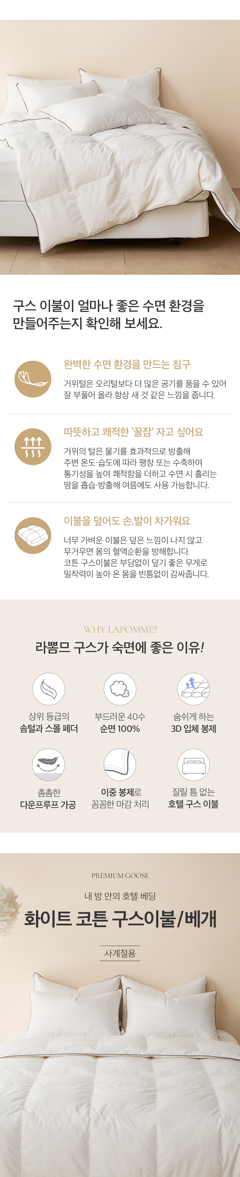 [라뽐므] 화이트 코튼 구스 이불(사계절용)+구스베개