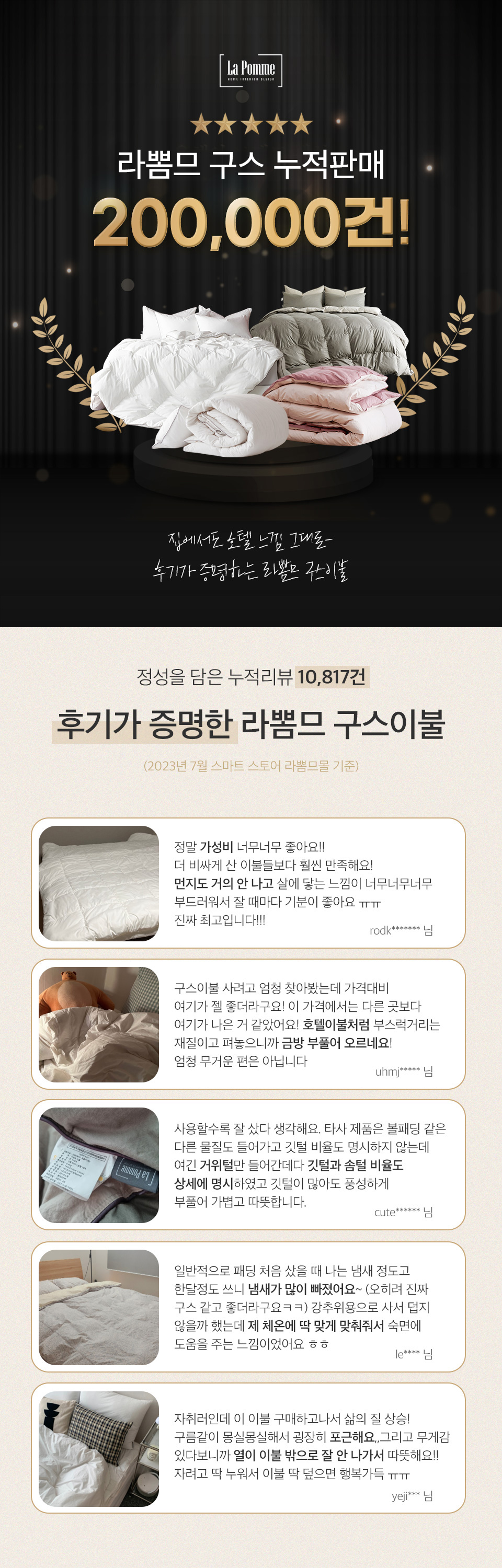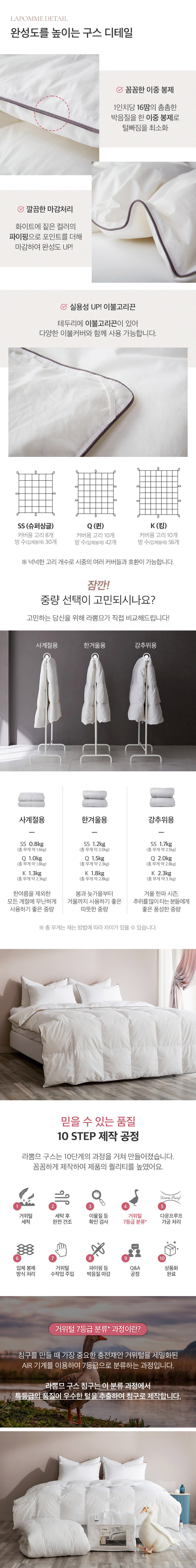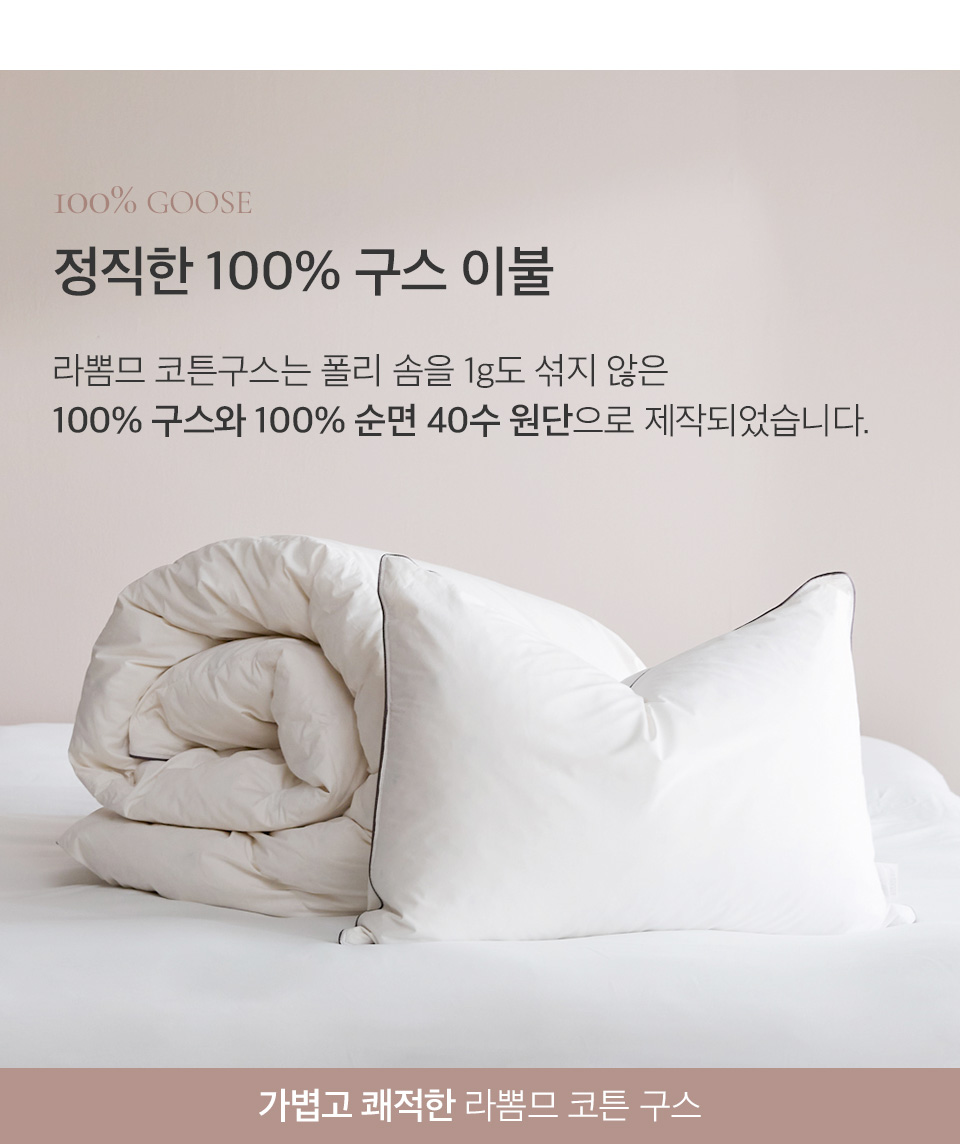 [라뽐므] 화이트 코튼 구스 이불(한겨울용)+구스베개