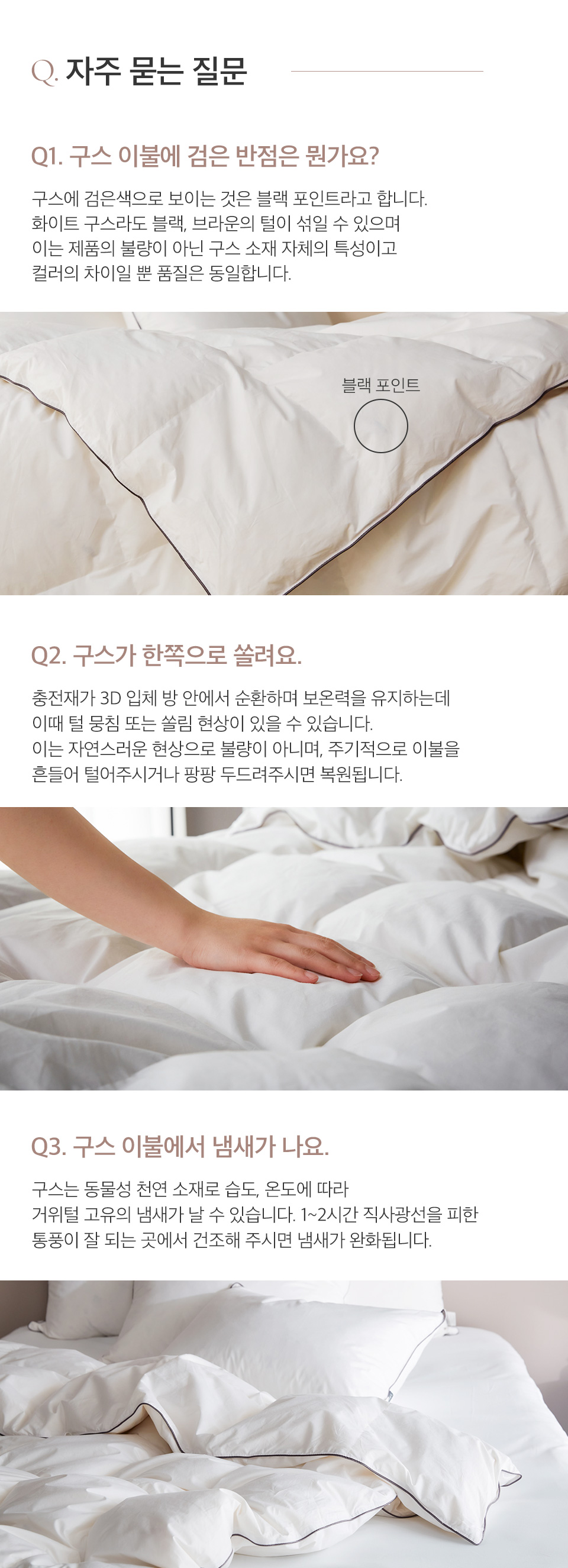 품질보증기준 * 라뽐므의 모든 침구는 세탁망 사용을 적극 권장합니다. [울코스 세탁, 약한 탈수, 자연건조 하세요~!!(건조기 사용 X) ] * 반드시 상세이미지 또는 라벨 표기데로 세탁하세요~!! * 이외의 방법으로 세탁하여 제품 손상 시에는 교환, 반품 불가합니다. * 제품 사용법 및 문의는 수입원~ 으로. * 반품 및 교환 접수는 복지몰 콜센서~로.
