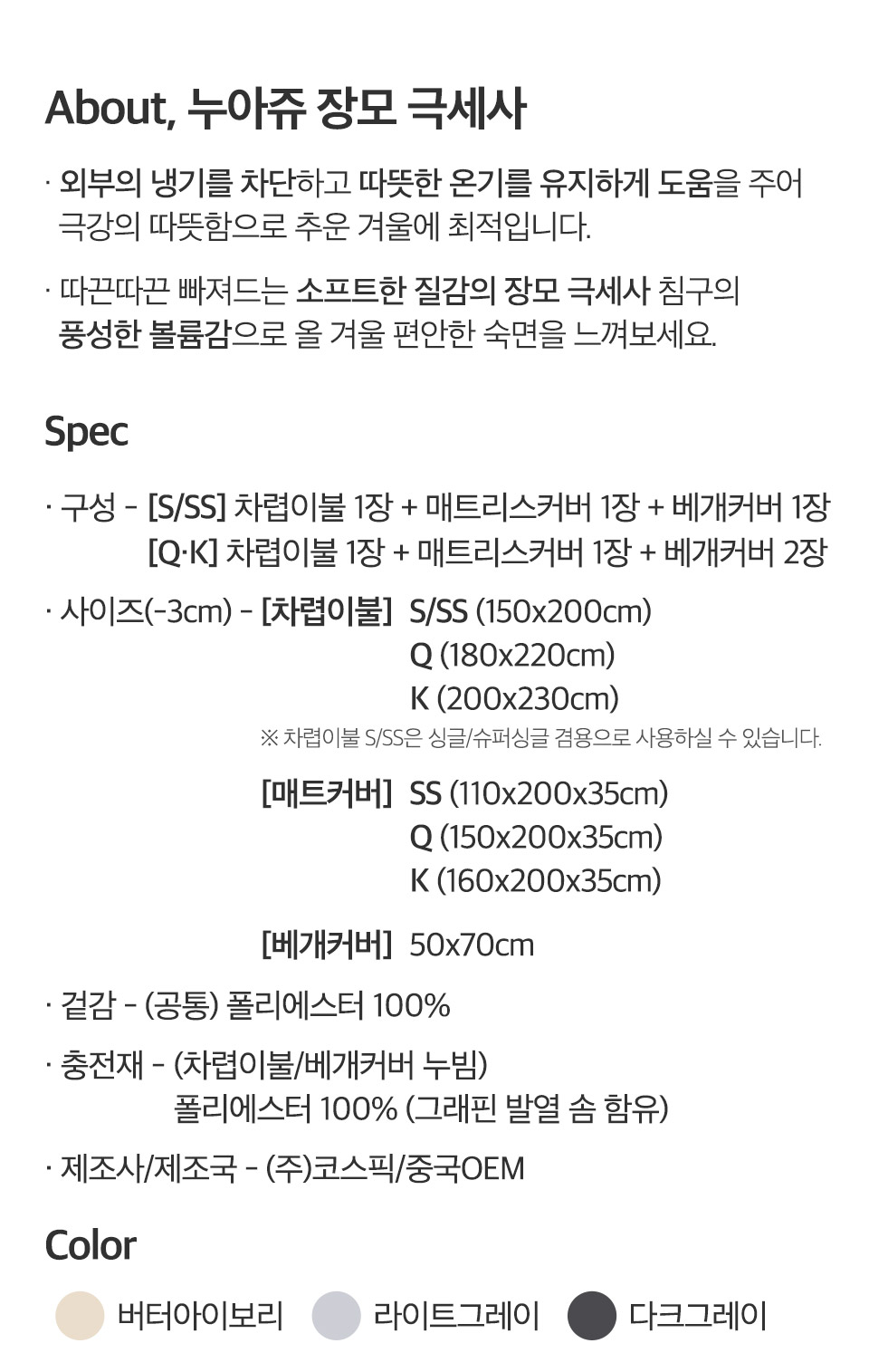 [라뽐므] 누아쥬 장모(長毛) 극세사 겨울 차렵이불(선택)+매트커버+베개커버