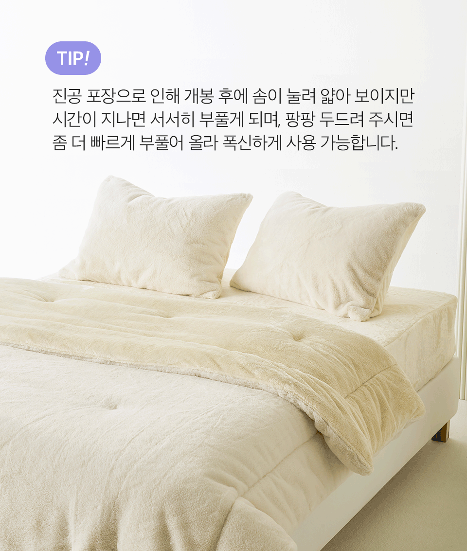 세탁방법 및 취급시 주의사항 * 라뽐므의 모든 침구는 세탁망 사용을 적극 권장합니다. [울코스 세탁, 약한 탈수, 자연건조 하세요~!!(건조기 사용 X) ] * 반드시 상세이미지 또는 라벨 표기데로 세탁하세요~!! * 이외의 방법으로 세탁하여 제품 손상 시에는 교환, 반품 불가합니다. * 제품 사용법 및 문의는 수입원~ 으로. * 반품 및 교환 접수는 복지몰 콜센서~로.