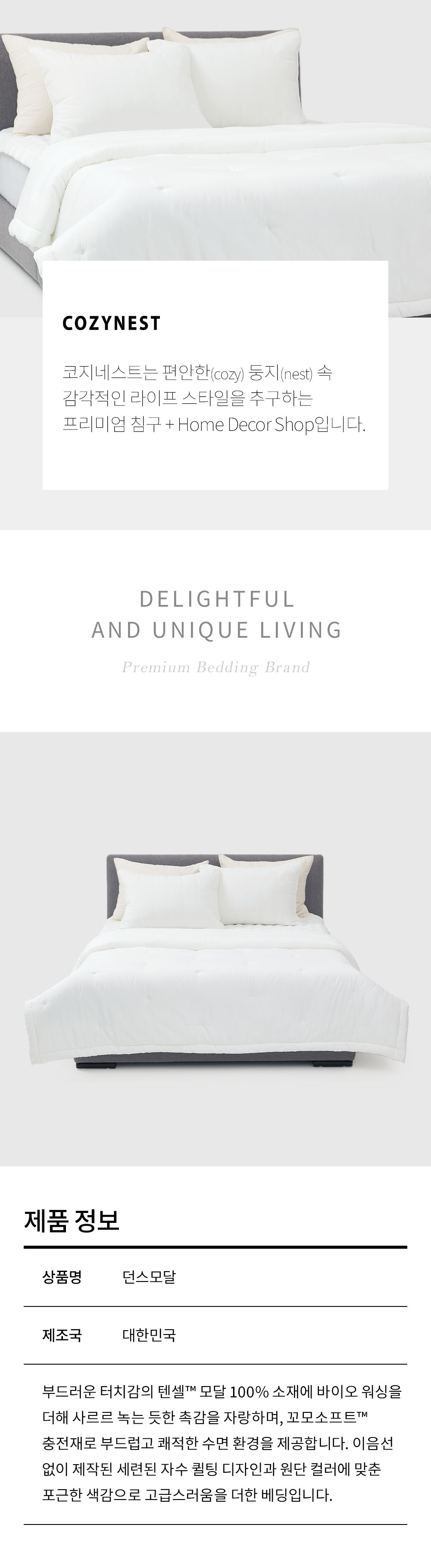 코지네스트 던스 모달 100% 사계절용 8온스 차렵이불+베개커버 백화점 정품 3가지 색상