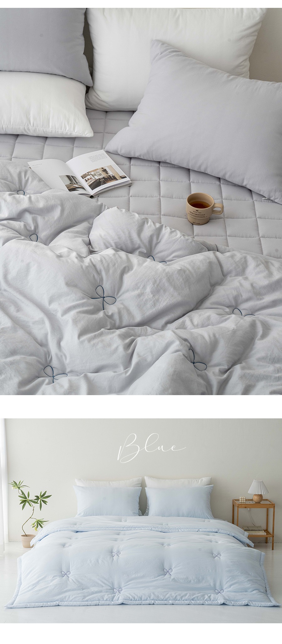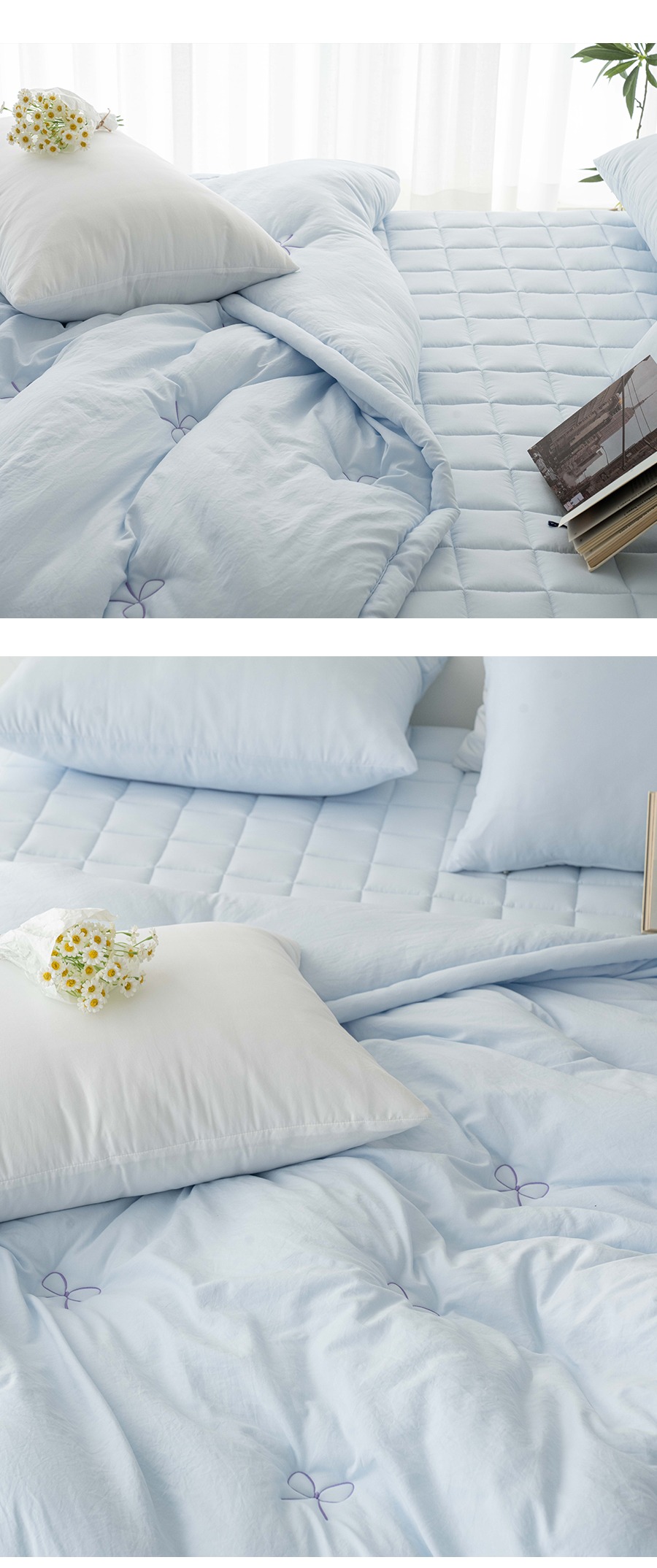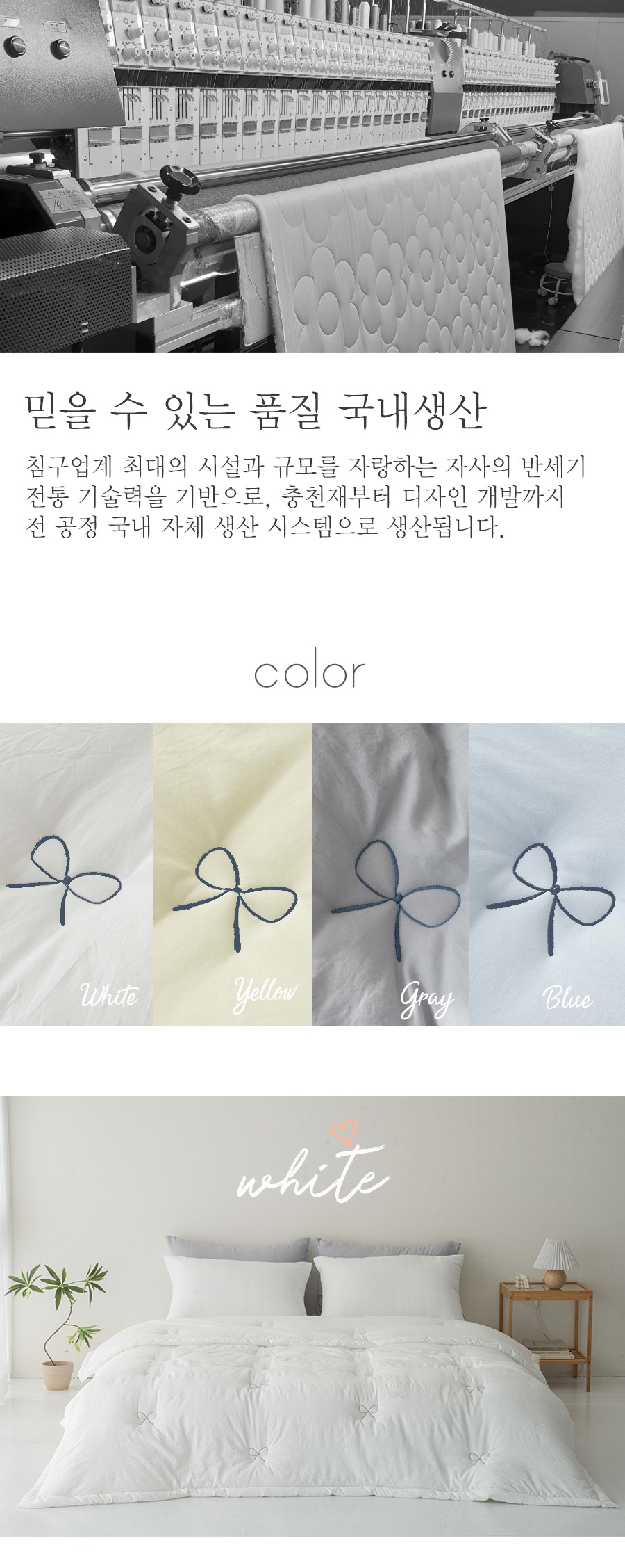 국내생산 가성비 이불 송화 귀여운 리본 자수 파스텔톤 차렵이불 먼지없는 알러지케어 세미마이크로 원단