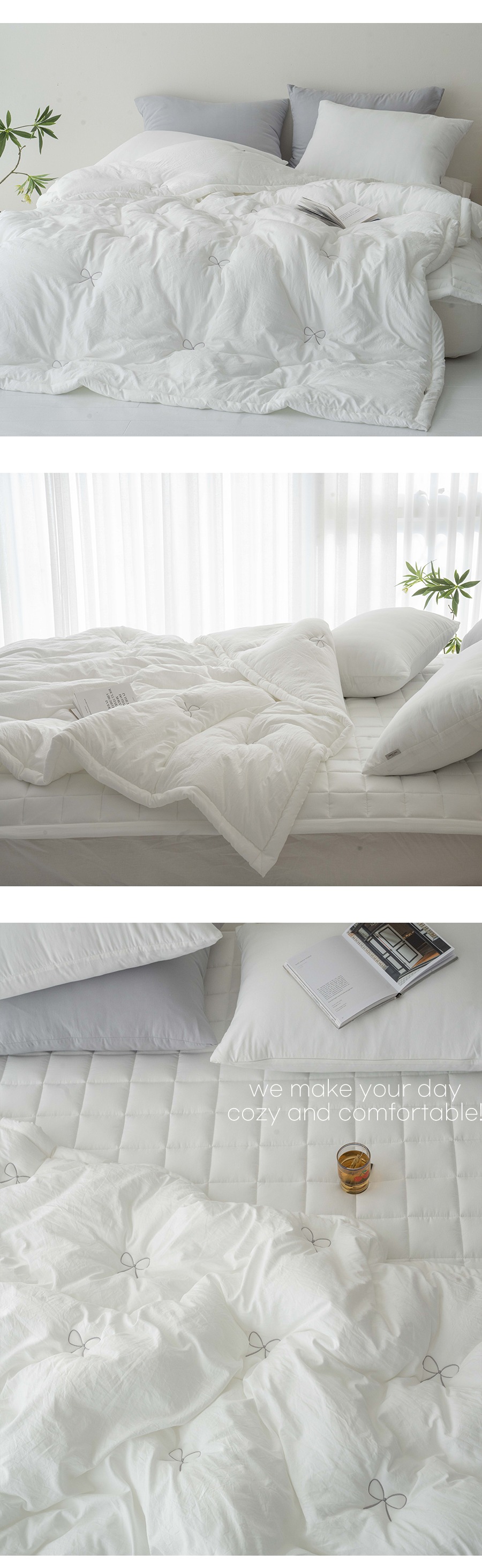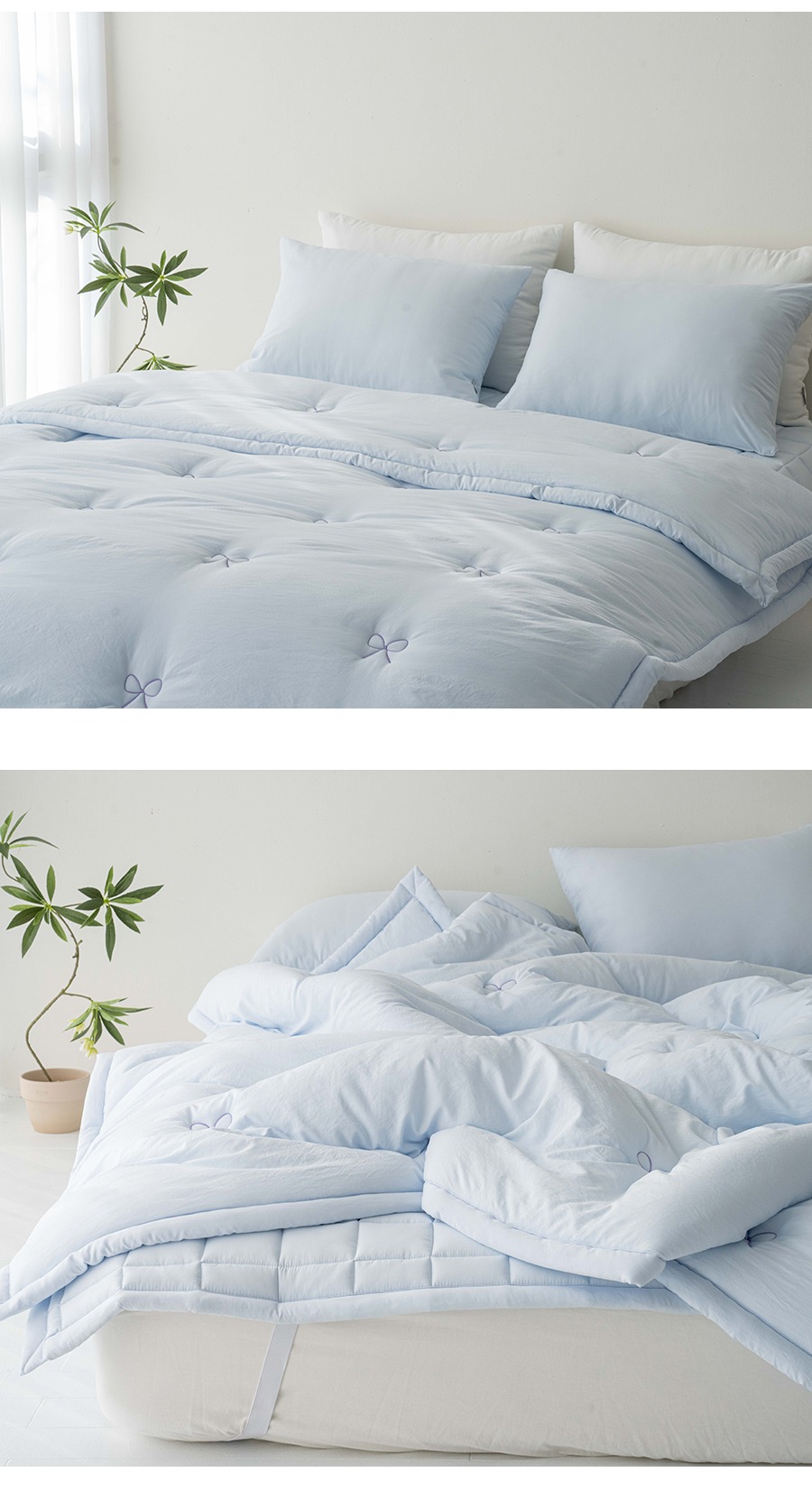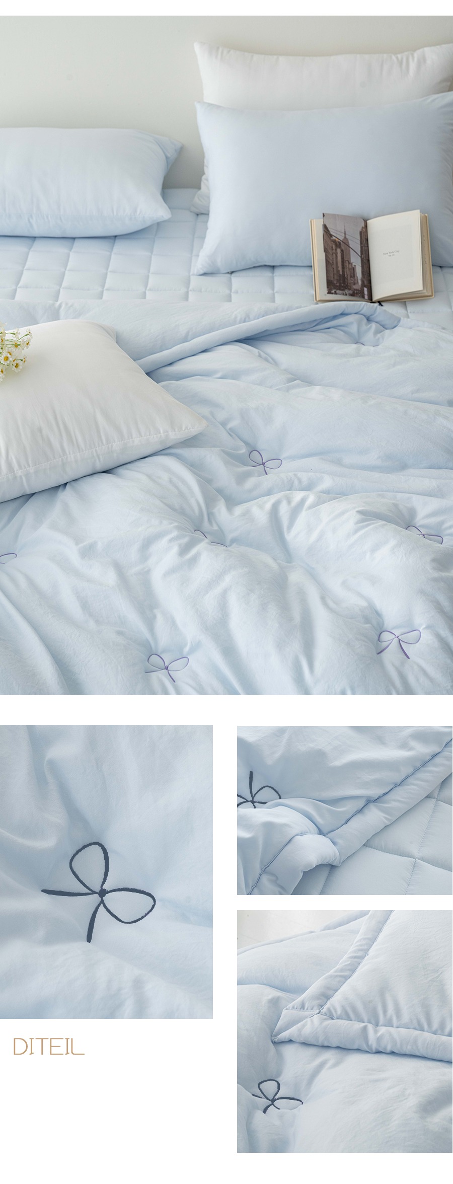 국내생산 가성비 이불 송화 귀여운 리본 자수 파스텔톤 차렵이불 먼지없는 알러지케어 세미마이크로 원단