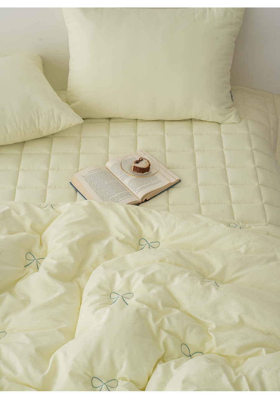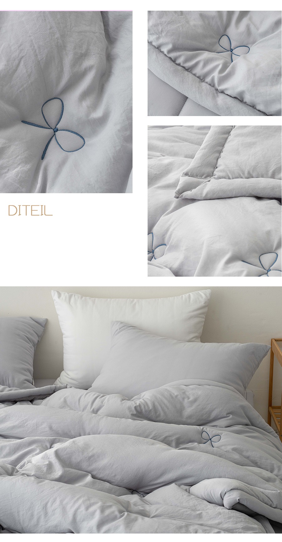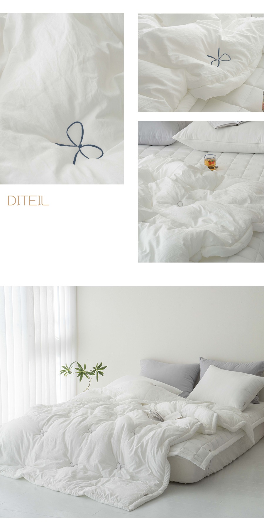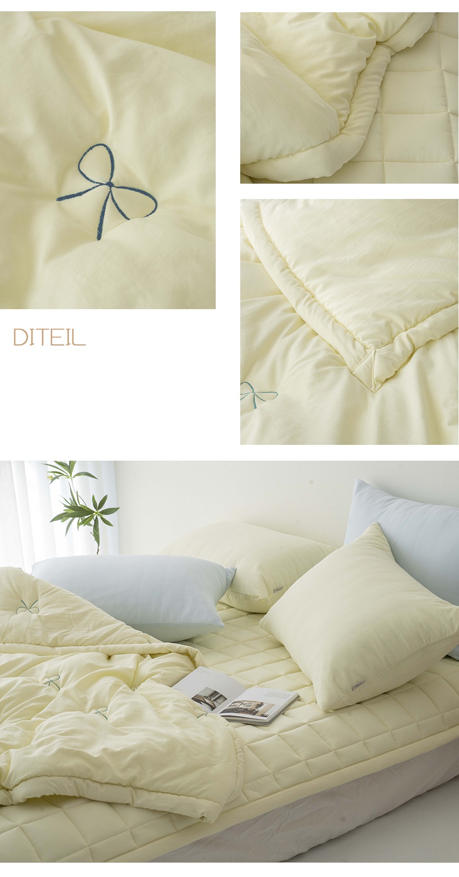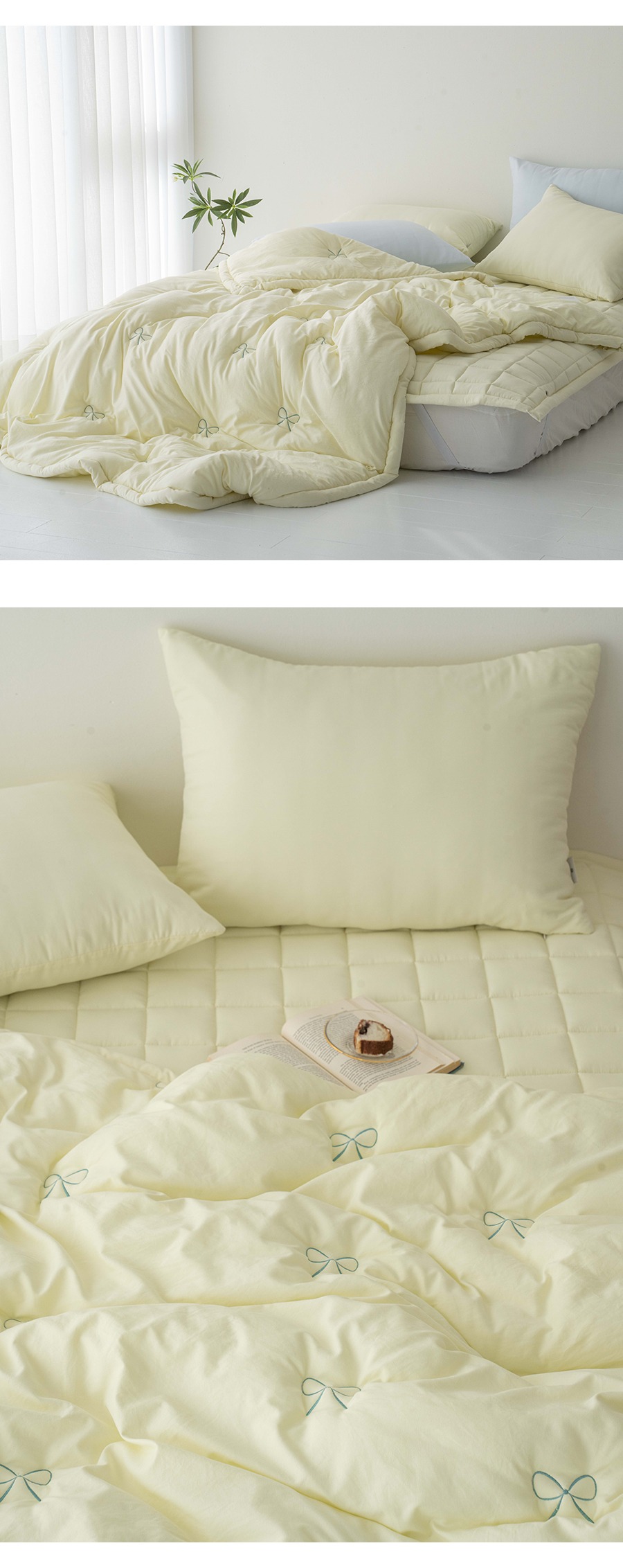 송화 귀여운 리본 자수 파스텔톤 차렵이불 먼지없는 알러지케어 세미마이크로 원단