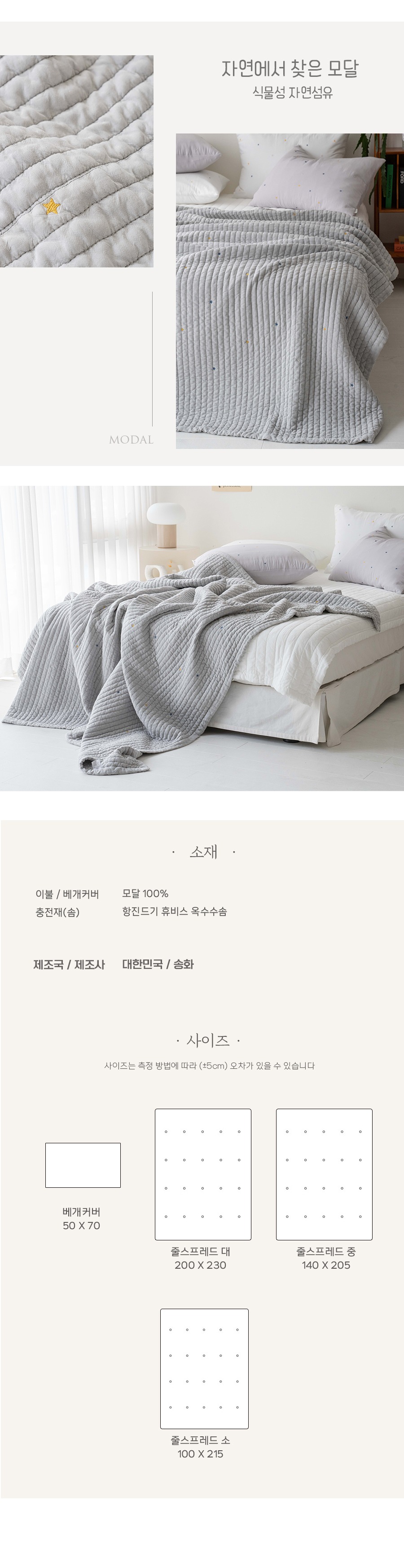 국내생산 가성비 침구 송화 별밤 줄누빔 스프레드 패드&이불 겸용 먼지없이 안전한 모달100%