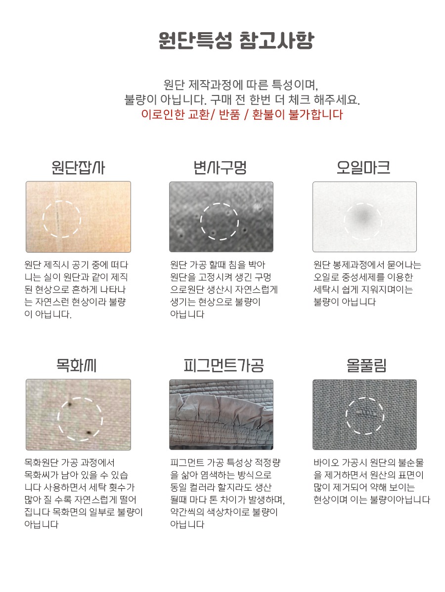 4.상품 하자 이외 사이즈, 색상 교환 등 단순 변심에 의한 교환/반품 배송비는 고객 부담입니다.