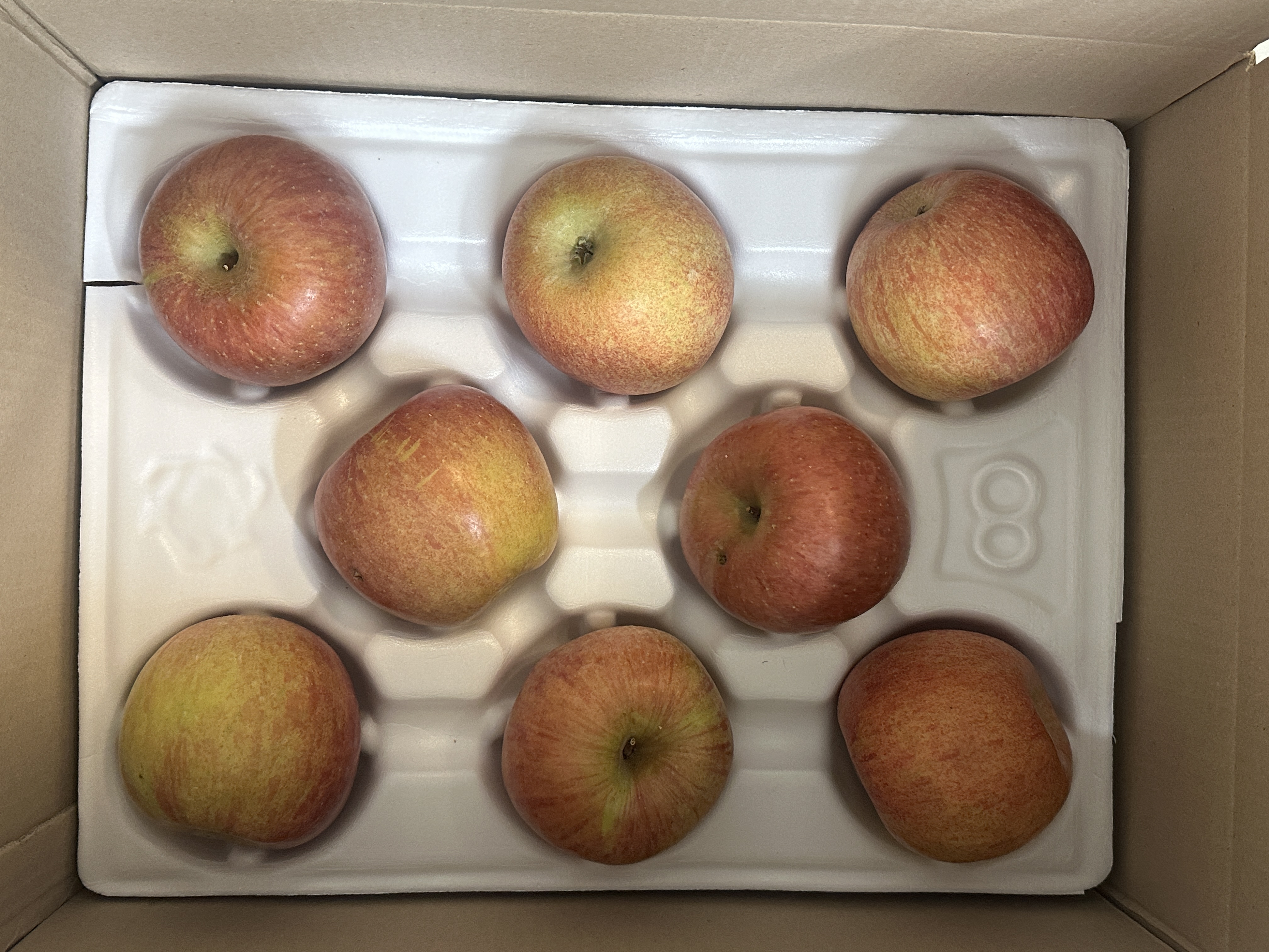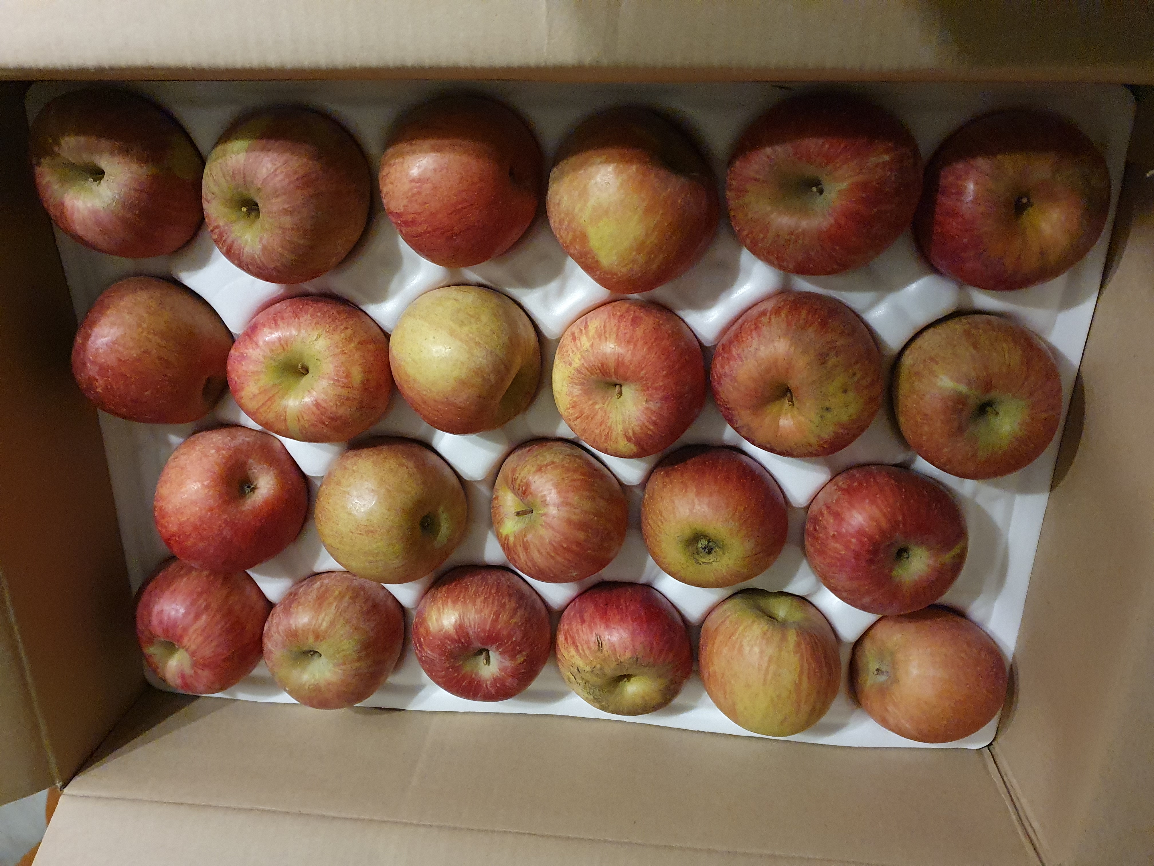 사과를 받았는데 주먹 크기의2/3 이네요. 맛은 약간 새콤달콤하구요. 껍질 꼭 깍아서 먹어야할듯요. 한개에 1,000원꼴 이네요. 12,500원에 13개요.