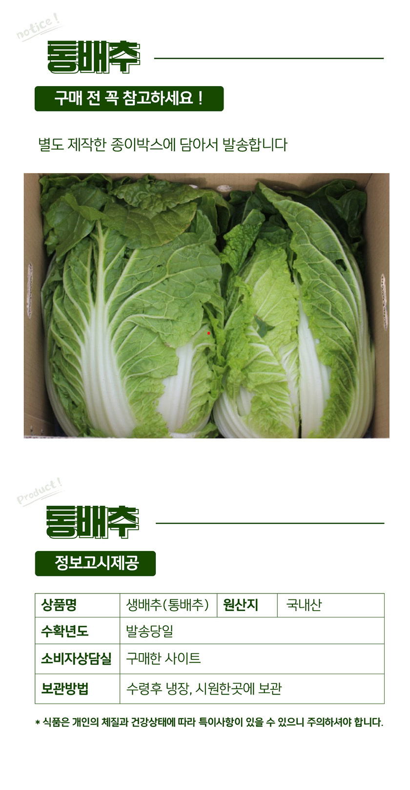 [남도애] 남도 생배추(통배추) 1망(3포기)