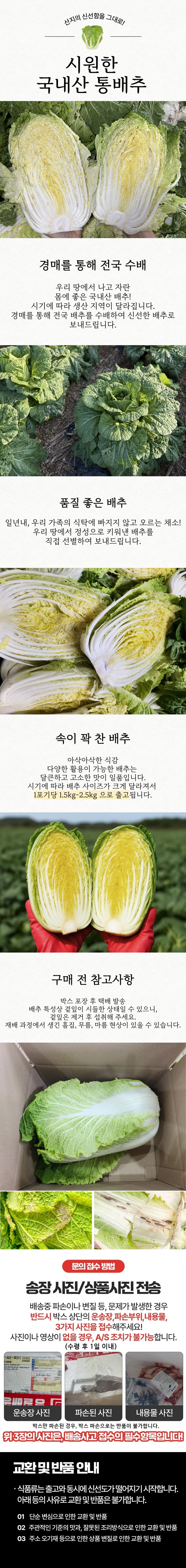 [산앤들] 국내산 통배추 (1포기 1.8kg~2.5kg 내외)